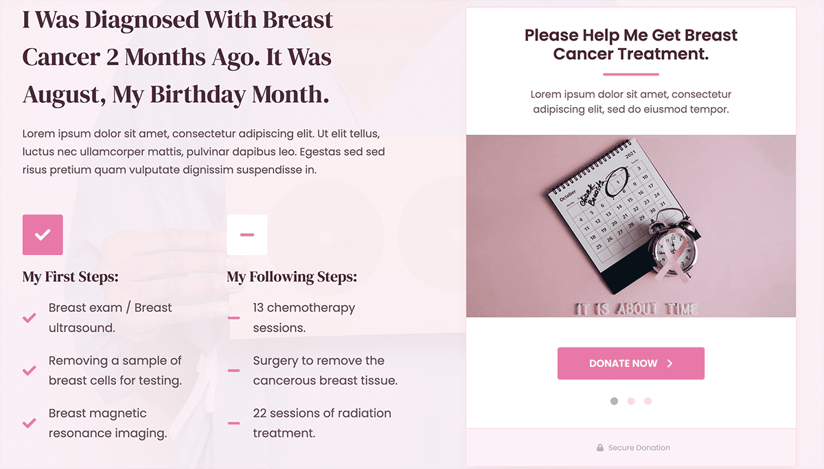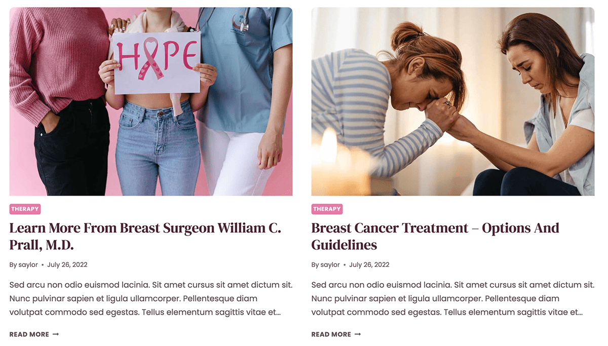 Receiving a cancer diagnosis is a life-altering experience. It might be hard to imagine that blogging about the experience is helpful to yourself and others, but it certainly can be. Some people start blogging about the experience just to keep friends and family informed, but a public blog can be so helpful to others going through similar experiences. Blogging can make connections you might never have imagined. This Cancer Fund Pro Starter Template has everything needed to get started with royalty-free images, sample blog post layouts and donation forms from the integration with GiveWP.